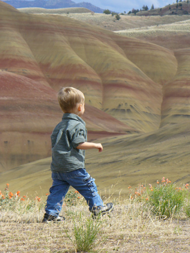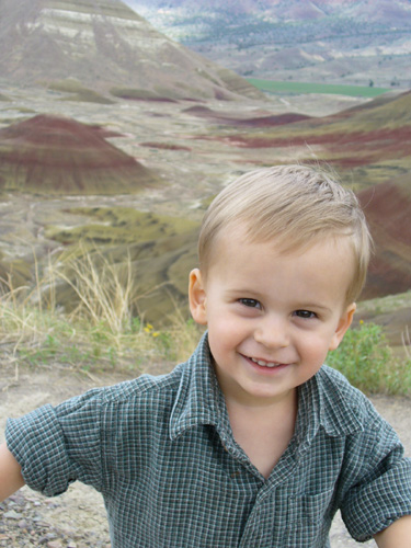 After barely catching a view of Crater Lake due to much of Western and Central Oregon being rainy, we still got in some hiking, and we enjoyed mostly nice weather while visiting Jeff's parents in John Day. Justin had fun celebrating his 2nd birthday and visiting his uncle and his grandparents. We also spent a day at two units of the John Day Fossil Beds National Monument.