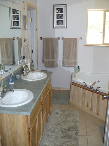 We took these photos back in June when we were still looking at homes, so you're seeing the previous owners' stuff instead of ours. And we now have lots of snow outside, too.
